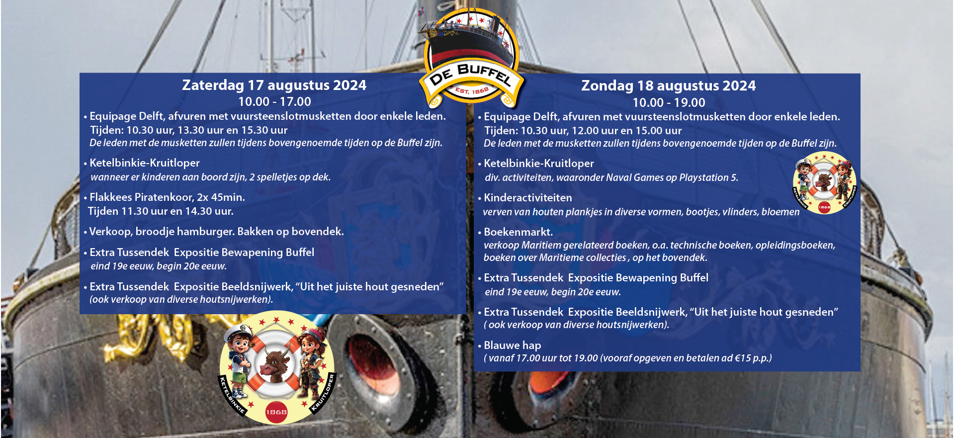 Op 29 november komt Sinterklaas naar de Buffel. Het Ramtorenschip Buffel is als officiële pakjesboot de hofleverancier van Sint Nicolaas.