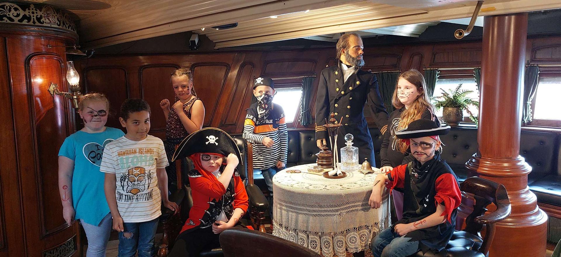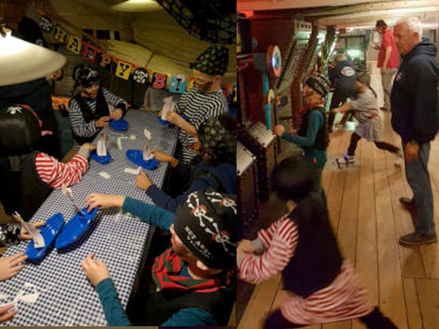 Wir machen ein einzigartiges Gruppenfoto beim Kommandanten. Bauen Sie zum Abschluss der Party Ihr eigenes Piratenboot (das Sie mit nach Hause nehmen können).